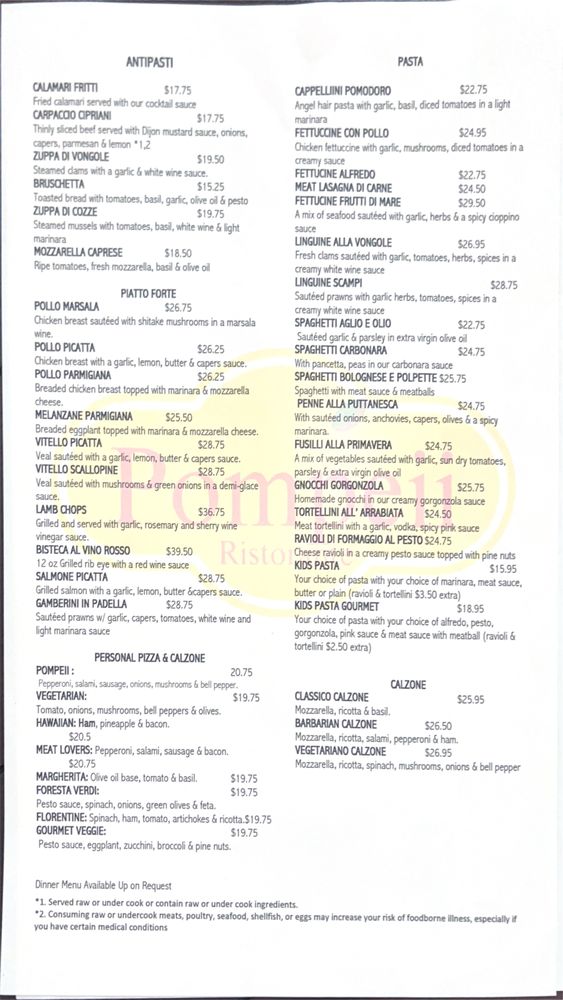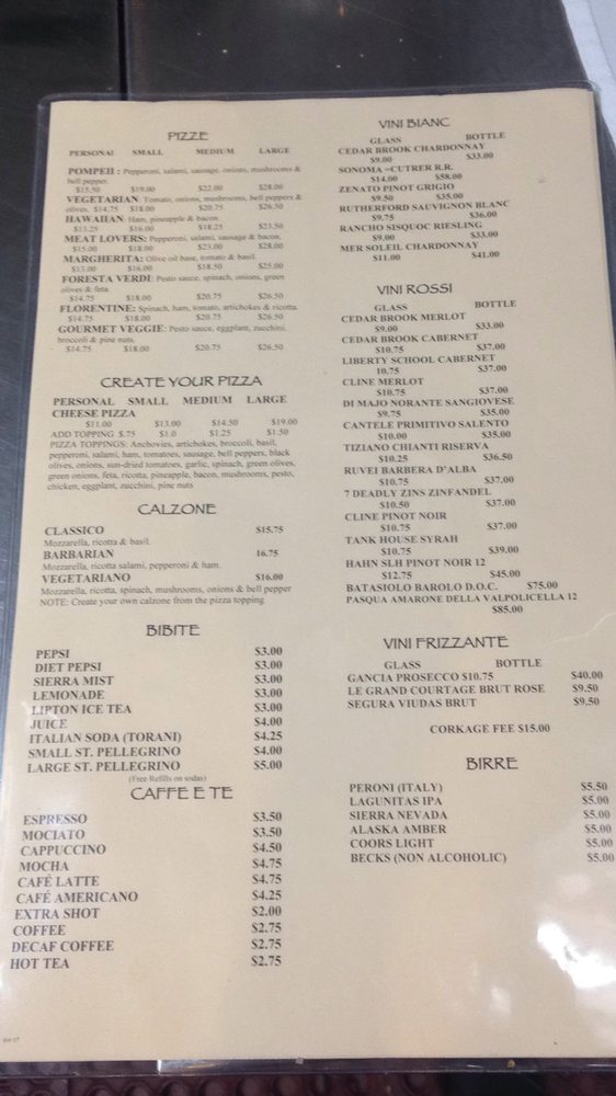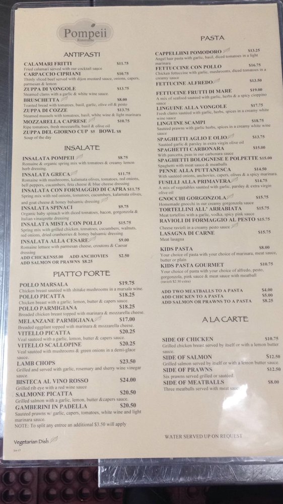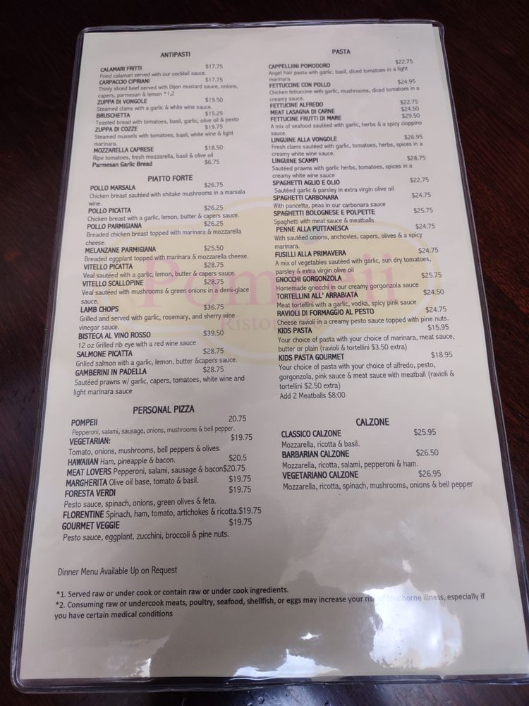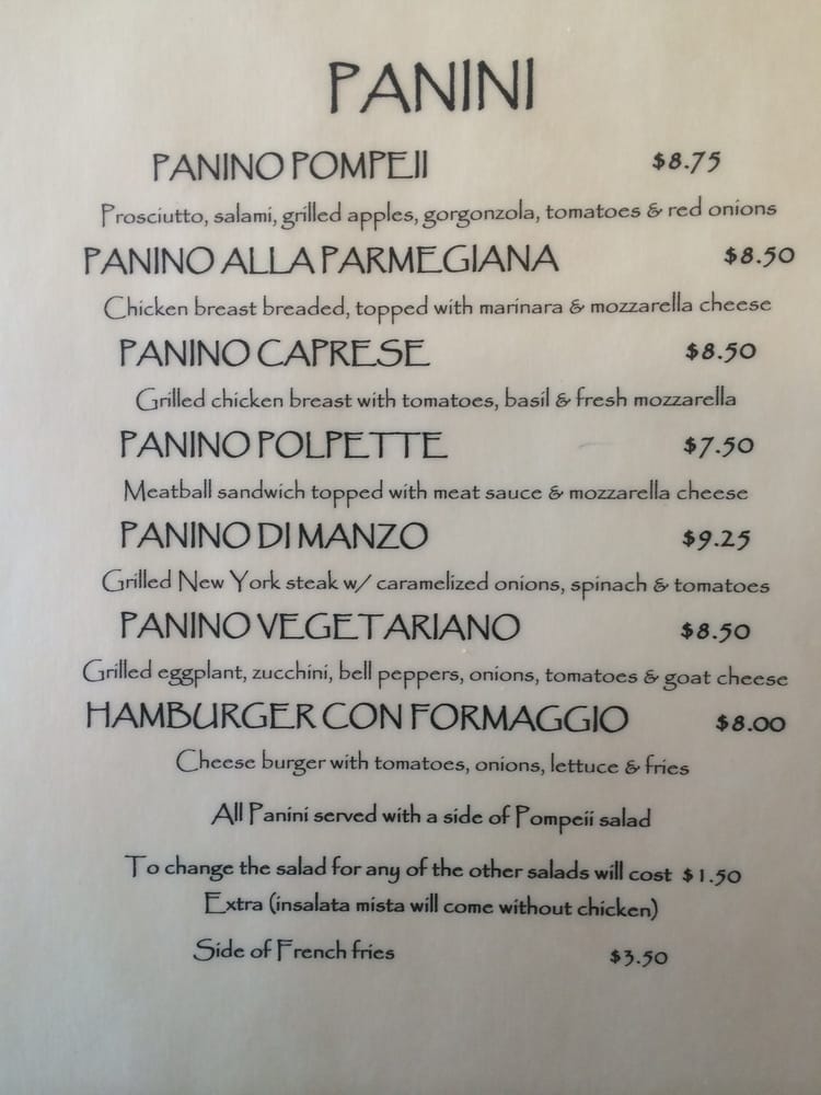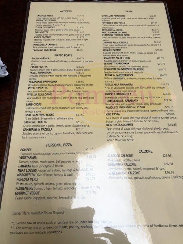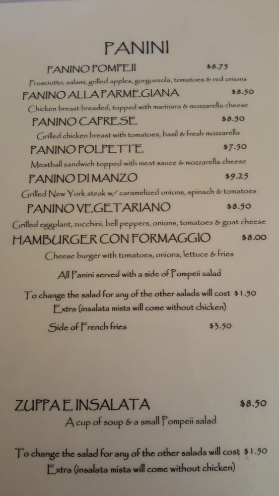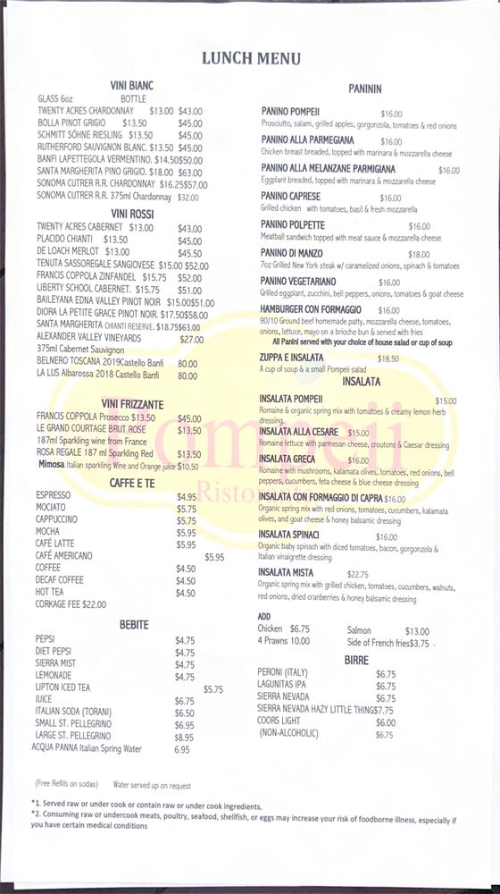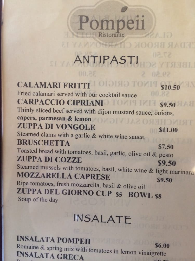 Pompeii Menu (Update 2025)